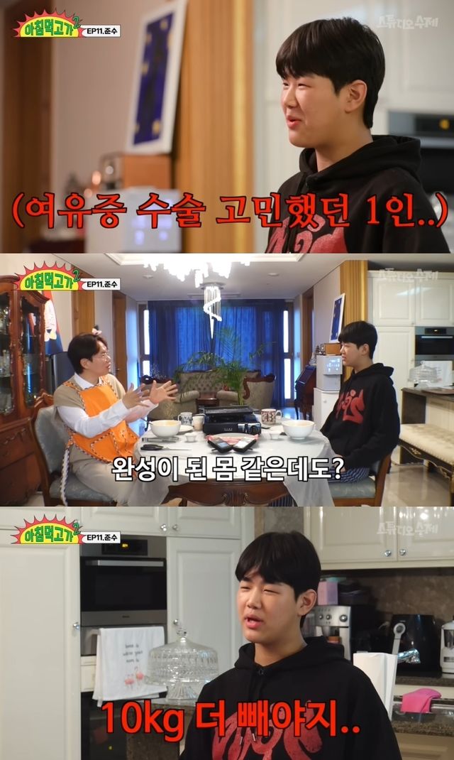 "고등학생 준수의 가장 큰 고민이 뭐냐"는 장성규의 질문에 준수는 "아직도 살이다"라고 답했다.