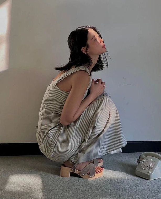 고민시는 4일 자신의 인스타그램을 통해 광고 촬영 현장에서 찍은 사진을 여러장 게재했다. 사진 속 그는 봄날의 햇살을 즐기며 나른한 포즈를 취하는 모습. 자유롭고 여유로운 모습으로 눈길을 끌었다.