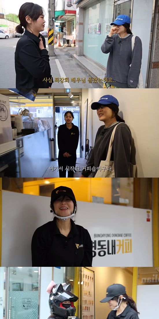 사례자가 아르바이트하는 카페에서 이날 하루 최강희는 일일 알바생이 됐다. 정식으로 옷을 갖춰입고 최강희는 커피를 내리고 디저터를 준비했다. 뿐만 아니라 직접 오토바이로 음료 배달을 가지고 했다.