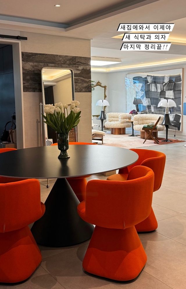 이어 "새 집에 와서 이제야 새 식탁과 의자 마지막 정리끝!!"이라며 이사한 새 집을 공개했다.