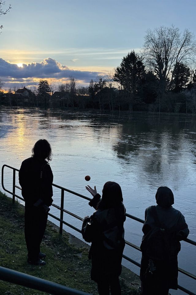 느리게 흐르는 시간 파리 일정은 그야말로 전쟁터였다. 매일 쉴 새 없이 패션위크 백스테이지 취재와 인터뷰를 마치고 숙소에 돌아오면 남은 촬영 준비로 마음 편히 잠잘 시간조차 없었다. 촬영 답사를 위해 우아즈강을 찾은 이날 역시 마찬가지였다. ‘빨리 찍고 가야지’ 마음먹고 도착했는데, 드넓은 강 위로 반짝이는 윤슬을 마주한 순간 그간 마음을 짓누르던 불안과 분주함이 모두 사라졌다. 우리는 그 윤슬을 사진으로 찍으면서 눈에도 많이 담자며 하염없이 바라봤다. 그날은 파리 패션위크 일정 중 처음으로 해가 뜬 날이었고, 그래서 바람이 한없이 포근했으며, 윤슬은 마치 보석 같았다. 몇 시간을 바라봐도 좋을 것만 같아서 노을이 지는 시간까지 기다리며 내내 친구들과 이야기했다. 오늘이 얼마나 행복하고 선물 같은 시간인지에 대해서. 파리에서 유일하게 시간이 느리게 흐르던 때가 아니었을까.