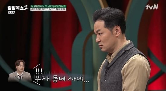 이날 김창옥은 "내가 여유가 있으면 잘 안 삐친다. 아까 제성 씨가 저한테 그러더라. '형. 어느 동네 살아?' 해서 '어. 나 이 동네 살아' 했더니 (눈을 부릅 뜨고) '부자 동네 사네' 하더라"라며 일화를 공개했다.