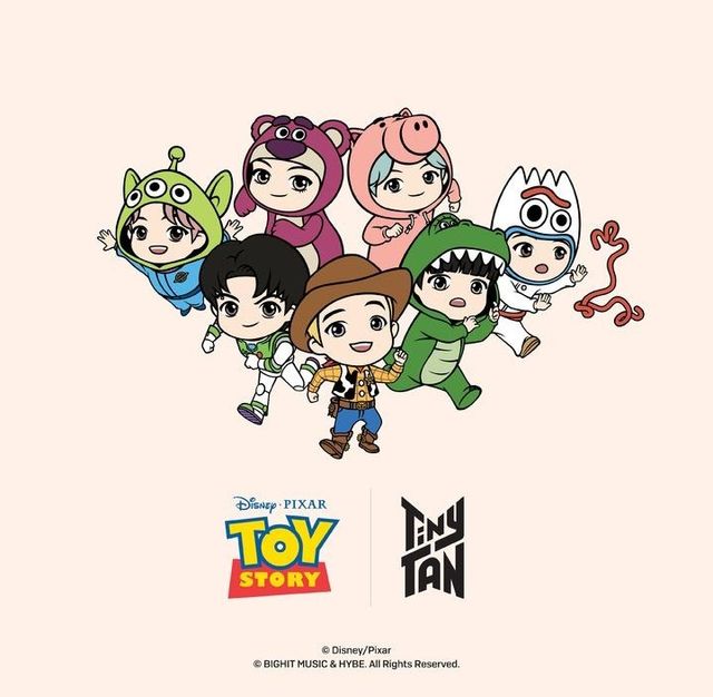 그룹 방탄소년단이 미국 픽사 스튜디오의 대표 애니메이션 ‘토이스토리’와 협업한다. 우디, 버즈, 알린, 햄, 렉스, 포키, 랏소 등 ‘토이스토리’의 대표 캐릭터들을 방탄소년단을 나타내는 애니메이션 캐릭터 ‘타이니탄’에 대입한 ‘토이스토리·타이니탄’ 캐릭터를 선보이고 해당 캐릭터를 활용한 공식 상품 6종을 신세계백화점 서울 본점, 강남점, 부산 센텀시티점에서 판매한다. 해당 캐릭터를 만날 수 있는 체험형 팝업 스토어도 5월 2일 강남점, 5월 17일 서울 본점, 6월 7일 부산 센텀시티점에 각각 연다.