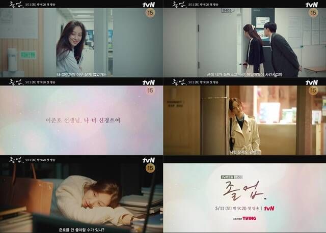 tvN 새 토일드라마 '졸업'(극본 박경화, 연출 안판석) 제작진은 5일 극 중 서혜진(정려원 분)과 이준호(위하준 분)의 모습이 담긴 캐릭터 영상 2종을 공개했다. 사제 관계에서 스타 강사와 신입 강사로 10년 만에 재회한 두 인물이 보여줄 이야기에 기대가 모인다.