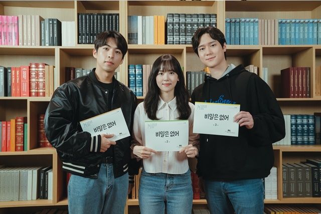 JTBC 새 수목드라마 '비밀은 없어' 대본 리딩 현장이 공개됐다. 배우 주종혁 강한나 고경표(왼쪽부터)의 모습. /SLL·키이스트