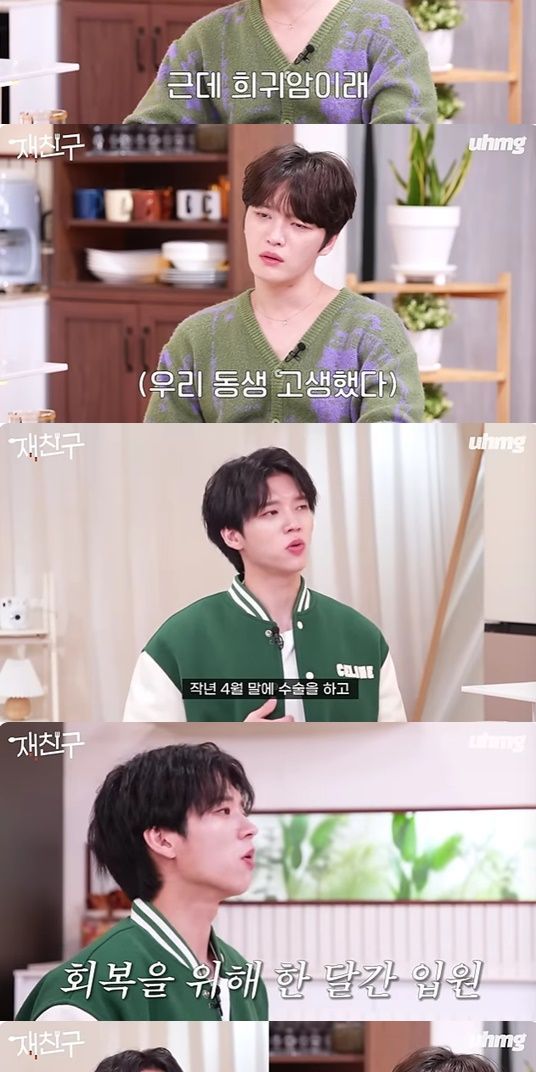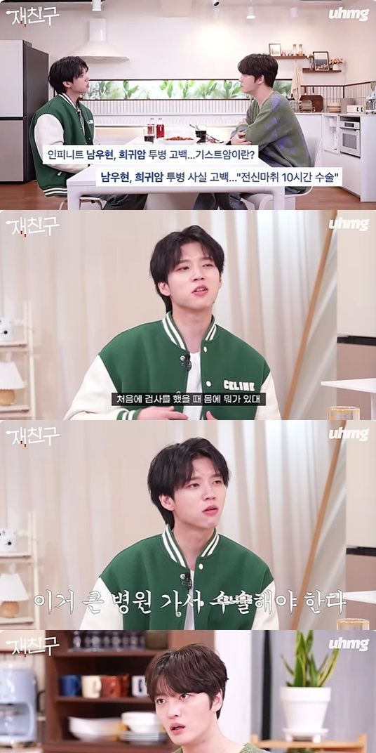 "재발 가능성이 없냐"는 김재중에게 남우현은 "있긴 있지만 극히 드물다고 하더라. 얼마 전 추적검사를 했는데 다행히 잘 아물었다. 회복하고 지금은 형을 만나고 있다"고 말했다.