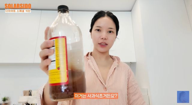 병에 사과식초가 아주 조금 남은 모습으로 솔라 역시 영상 촬영을 위함이 아니라 실제 열심히 먹고있음을 보여줬다.