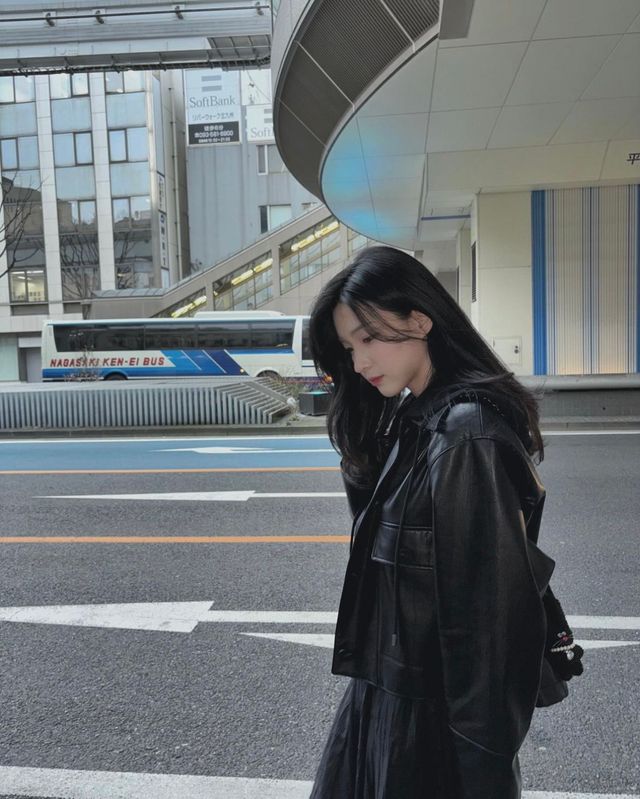공개된 게시글에서 율희는 일본의 키타큐슈를 여행하며 올블랙 차림으로 안경을 쓰고 카메라를 향해 브이하고 있었다.