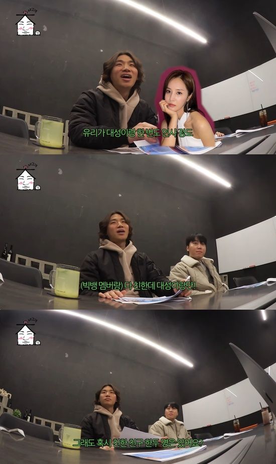 제작진은 "소녀시대 유리가 대성이랑 한 번도 인사 정도도 해본 적이 없다더라. (빅뱅 멤버들과) 다 친한데 대성이랑만 (안 친하다더라)"고 말해 대성을 당황시켰다.