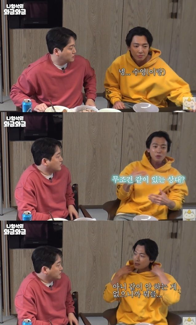 '그냥 익숙한 존재냐'는 질문에도 그는 "같이 안 하는 게 없다. 뭐를 혼자 해본 적이 없다. 무조건 같이 있는 상대다"라며 항상 붙어있음을 밝혔다.