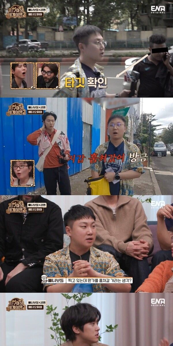 6일 방송된 ENA ‘지구마불 세계여행2’ 5회에서는 에티오피아에 간 빠니보틀과 ‘사진 작가’ 공명, 케냐에 간 원지와 ‘요리사’ 김용명, 힘쓸 무(務) 인도에 간 곽튜브와 ‘아이돌’ 박준형의 2라운드 여행기가 펼쳐졌다. 그중 길거리에서 소매치기를 당한 빠니보틀의 이야기가 시청자들에게 충격을 안겼다.