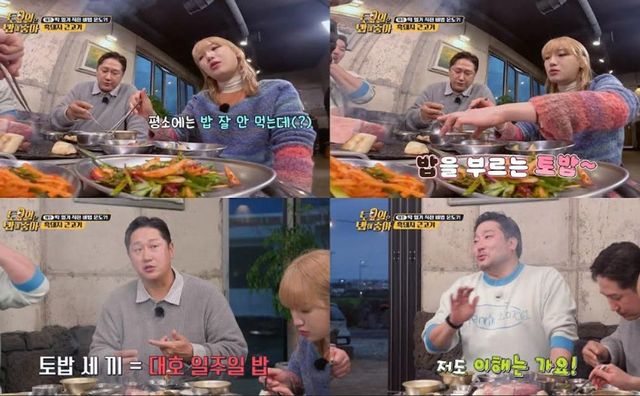 추가로 공깃밥과 모둠 고기 한 근을 주문한 히밥은 “평소에는 밥을 자주 안 먹는데 ‘토밥’만 오면 밥을 많이 먹는다. 평소에는 공깃밥 추가 잘 안 하는 편”이라며 고개를 갸우뚱했다.