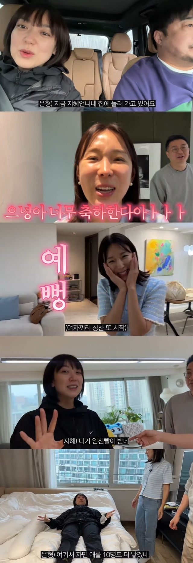 영상 속 이은형은 "지금 지혜 언니네 집에 놀러 가고 있어요"라고 목적지를 알렸다. 강재준은 2년 전 쯤 이지혜의 유튜브인 '밉지않은 관종언니' 촬영을 했던 것을 언급하며 "오늘은 콜라보를 해서 우리도 찍고, 누나네도 찍는다"고 설명했다.