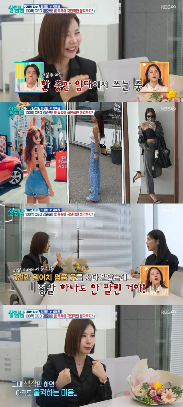 그러자 김준희는 "버텨야 한다. 3천만 원이라는 돈이 그때는 큰 돈이었다. 옷을 가져와서 깔았는데 하나도 안 팔렸다. 재고를 남긴 거다. 그러고 나서 돈을 끌어쓴 곳에서 독촉이 왔다"고 털어놓았다.