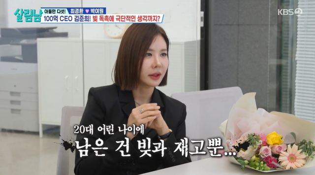 그러면서 "극단적인 생각까지도 제가 했다. 아직도 지금 생각하면 울컥한 이야기인데, 잠을 하루에 2시간 자고 그렇게 하다가 그 빚을 갚았다. 8개월 만에"라고 자신의 힘들었던 과거 이야기를 전했다.