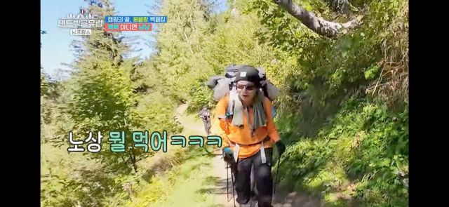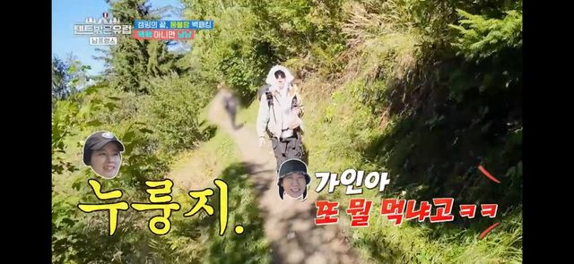 한가인은 10㎏ 배낭을 메고 하는 트레킹 중에도 연신 무언가를 먹고 있어 멤버들에게 놀라움을 선사했다. 한가인이 갑자기 ‘까드득’하고 씹는 소리를 내자 조보아는 뒤돌아서며 “언니 사랑해요”라며 큰 웃음을 터트렸다.