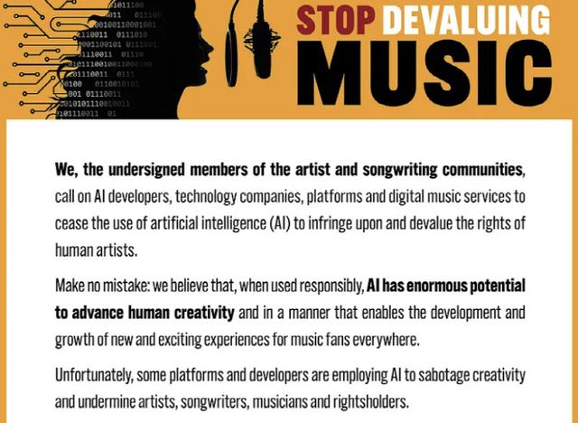 예술가권리연합(The Artist Rights Alliance)은 지난 3일(현지시간) 공개성명서를 통해 AI 개발자, AI 기술 기업, AI 플랫폼, 디지털 음악 서비스 업자 등에게 이같이 요구했다.