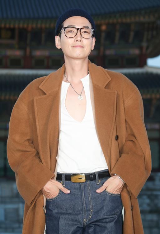 배우 정경호가 16일 서울 종로구 경복궁 근정전 입구에서 진행된 구찌(Gucci)의 2024 크루즈 쇼 포토콜 행사에서 포즈를 취하고 있다. / 뉴스1
