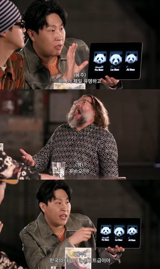 이후 '피식쇼' 멤버들은 푸바오와 러바오, 아이바오의 사진을 보여주며 "한국에서 유명한 3명의 판다다. 만약 '쿵푸팬더'가 실사화돤다면 어떤 판다가 제일 적격인지 봐달라"고 소개하면서 잭 블랙의 마음에 드는 판다를 골라달라고 말했다.