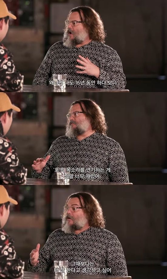이에 잭 블랙은 "잘 보면 흰머리가 조금씩 나고 있다"고 농담을 던졌고, "16년 동안 목소리 연기를 했는데, 1편 때와 달라진 것이 있냐"는 물음에는 "내가 좀 더 편해진 것인지는 모르겠지만, 나도 16년 동안 하다 보니 자신감이 좀 붙은 것 같기도 하다"고 밝혔다.