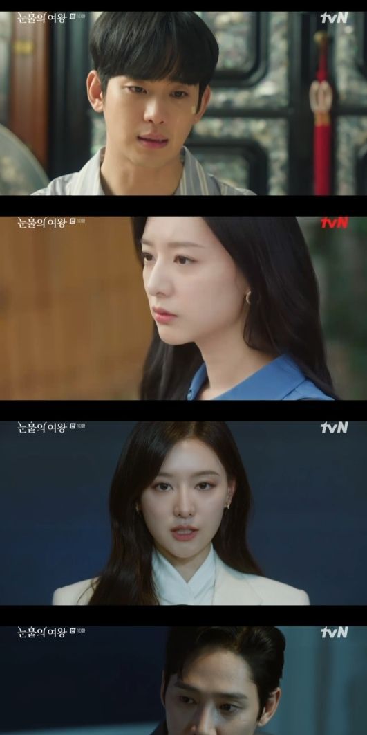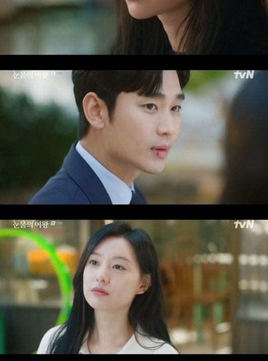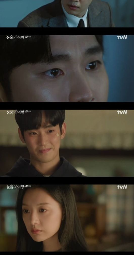 7일 방송된 tvN 토일드라마 '눈물의 여왕'에서는 홍해인(김지원 분)이 백현우(김수현)의 취중고백에 자신의 약점을 모두 밝히는 모습이 담겼다.