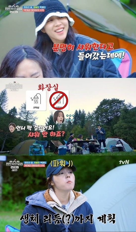 (엑스포츠뉴스 김유진 기자) '텐트 밖은 유럽-남프랑스'의 한가인인 씻지 못해도 쿨한 모습으로 웃음을 자아냈다.
