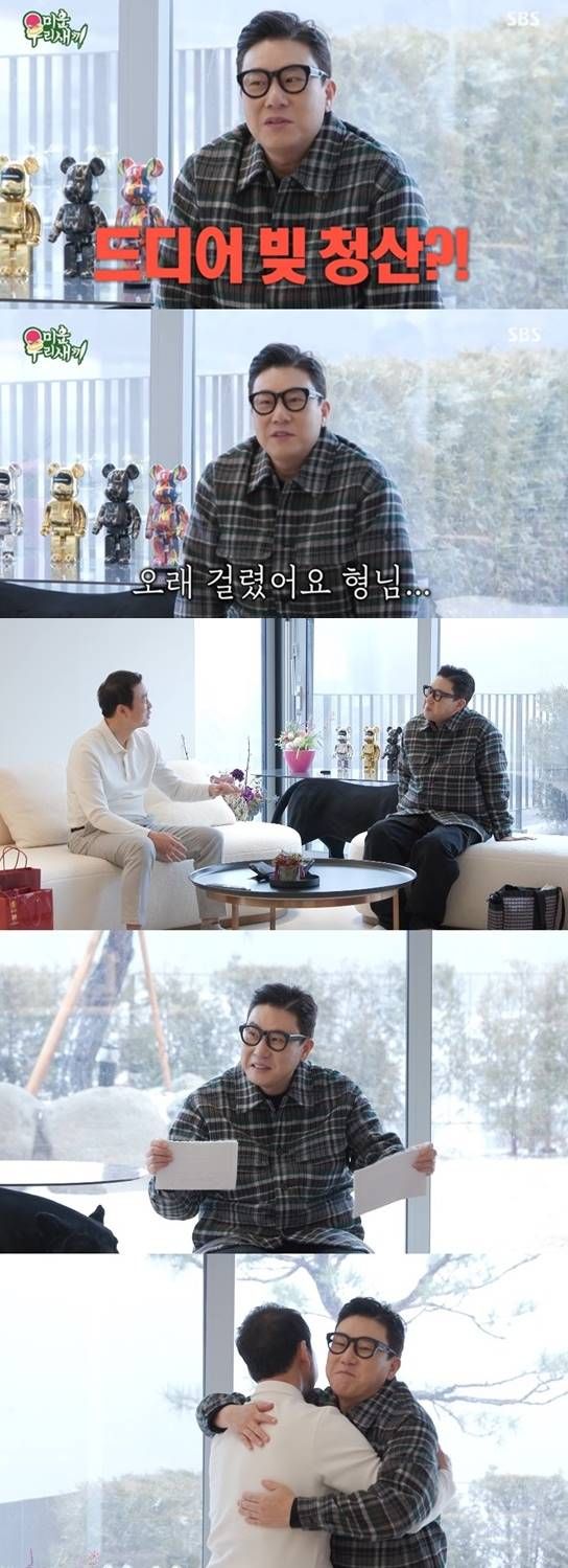 7일 방송된 SBS '미운 우리 새끼'(이하 '미우새')에서는 이상민이 20년 만에 69억 원 상당의 빚을 청산했다고 밝히는 모습이 전파를 탔다.