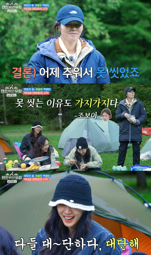 이후 한가인은 멤버들이 백패킹을 하면서 화장실 문제를 걱정하자 “난 그럴 줄 알고 새벽에 갔다 왔다. 어마어마한…”이라면서 “루틴에 맞게 하는 것이 너무 좋다”고 이야기해 또 한 번 웃음을 안겼다.