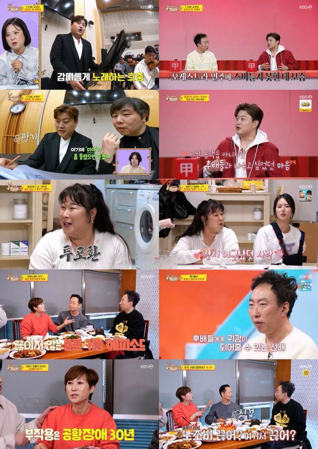 임미숙은 “빚만 50억이었다”라면서도 피자집, 한식당, 미사리 카페 등 여러 업종을 전전하다 “지금은 빚을 다 청산했다”라는 말로 후배들에게 박수를 받았다. 특히 명품 브랜드 의상과 시계를 착용한 김학래에게 감탄한 박명수는 “성공한 선배의 모습이 후배들에게는 귀감이 된다”며 기뻐했다. 박명수가 “개그맨 대표 부부의 공통점은 식당을 한다는 것”이라고 전하자 김학래는 “여자 덕에 먹고사는 커플들”이라는 발언으로 모두의 고개를 끄덕이게 했다.