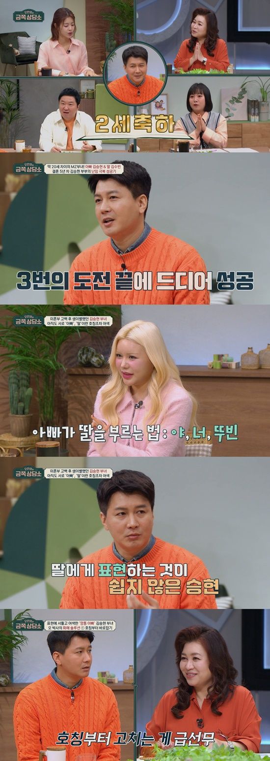 9일 방송 예정인 채널A '오은영의 금쪽 상담소'의 '가족 화해 프로젝트' 두 번째 고객님으로 원조 하이틴 스타 김승현, 김수빈 부녀가 방문한다. MC 정형돈은 김승현, 장정윤 부부의 2세 임신 소식을 공개하고, 상담소 식구들은 김승현, 장정윤 부부에게 아낌없는 축하를 보낸다.