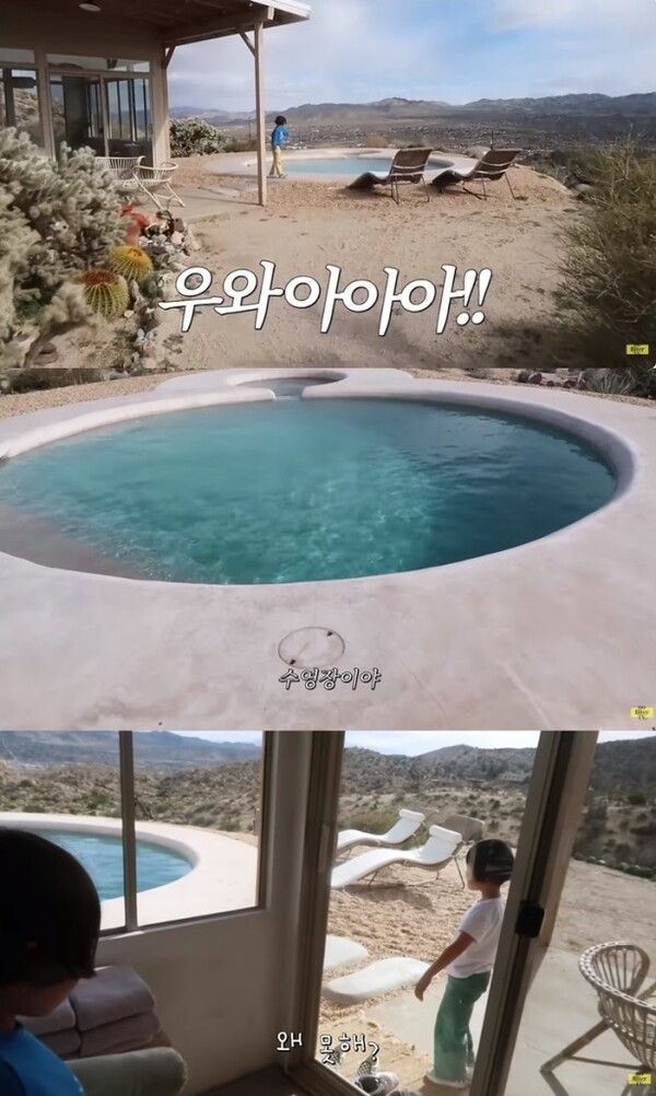 김나영 가족은 팜스프링스 근처에 있는 숙소 체크인까지 한 시간이 남아 마트에 들렀다가 첫 번째 숙소에 도착했다. 들어오자마자 보이는 수영장에 돌로 다 만들어진 부엌까지 굉장히 예쁘게 꾸며져 있었다. 침실은 총 세 개 였다. 김나영은 "수영장에서 수영하면 되겠다는 마음으로 예약을 했는데 수영을 할 수 없는 상황이다. 사실 고립돼 있다. 제가 LA를 처음와서 여기가 이런 곳인지 몰랐다. 굉장히 시골이어서 배달도 잘 안 되는 것 같다"고 아쉬워 했다. 아쉬운대로 신우와 마이큐가 끓인 짜파게티로 힐링을 했다.