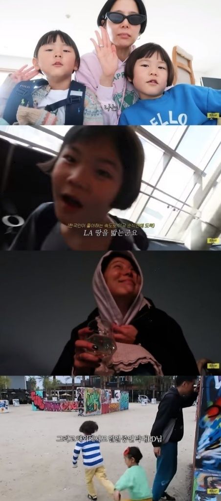 공개된 영상 속 김나영은 LA 여행을 떠나기에 앞서 아들 신우, 이준이와 선서를 했다. 김나영은 "나는 새로운 음식을 시도해 본다. 언제 숙소에 들어가냐, 여기는 왜왔냐라고 말하지 않겠다. 나는 엄마 말을 잘 듣겠다"며 외쳤다. 이에 신우, 이준이도 따라 외쳐 웃음을 자아냈다.
