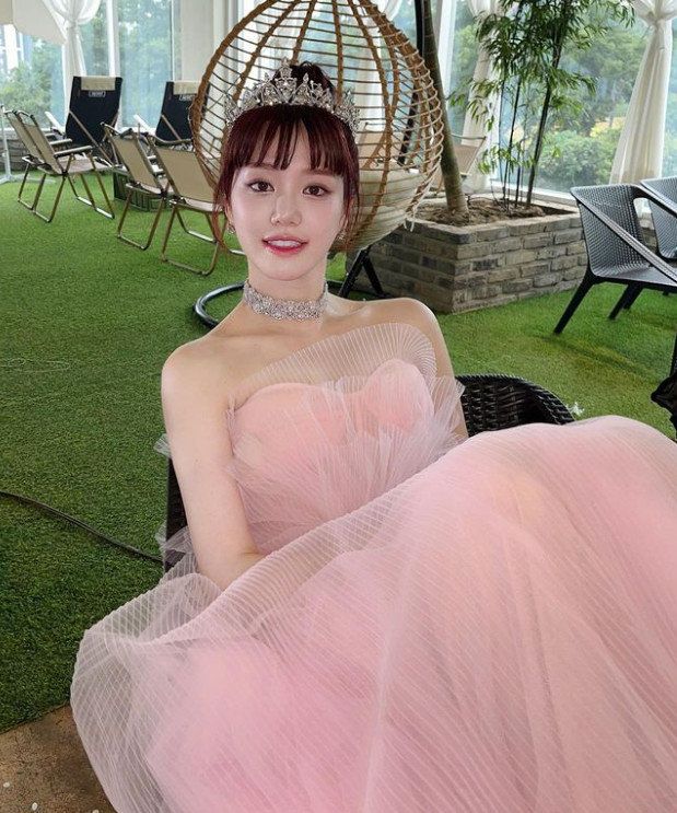 이유비는 8일 자신의 인스타그램을 통해 웨딩드레스를 입고 찍은 사진을 여러장 공개했다. 핑크빛 튜브톱 드레스를 선택한 그는 통통 튀면서도 사랑스러운 매력을 한껏 드러냈다. 이유비는 “약혼하는데 기분이 좋지 않았다. #7인의부활 #한모네 #웃어 #아냐웃지마”라고 글을 덧붙였다.