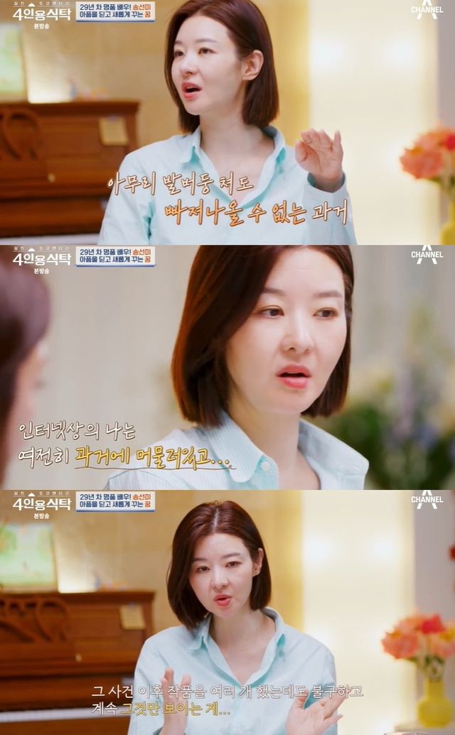 송선미는 "그럴 때 '그만해야 하나' 하는 생각이 들었다. 아무리 뭔가를 해도 그거를 덮을 수는 없는 거다"고 말했다.