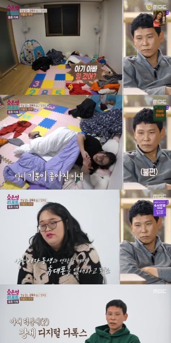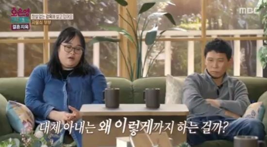 아내는 "의심이 가니까 그렇게 하는거다. 저를 두고 외박을 한 적이 있다. 다른 여자가 있을까 의심이 들었다"고 했고, 남편은 "의심이 짜증나니까, 화가 나서 안 들어갔다. 창살없는 감옥에 사는 느낌"이라고 답답함을 토로했다.