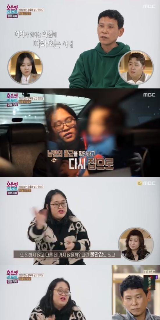 8일 방송된 MBC '오은영 리포트 - 결혼지옥'에서는 남편의 외도를 의심해 일거수일투족 따라다니며 통제하는 아내와 그런 아내 때문에 창살 없는 감옥에 사는 것 같다고 토로하는 남편, '자물쇠 부부'가 출연해 사연을 들려줬다.