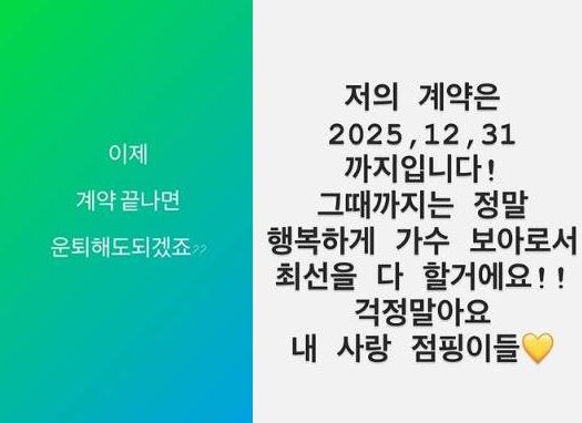 하지만 직접 계약 종료 시기를 밝혀 '은퇴 날짜를 정한 게 아니냐'는 더 큰 우려가 속출하기도 했다.