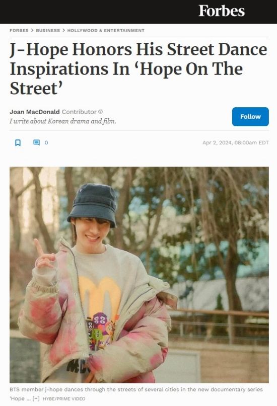 (엑스포츠뉴스 이정범 기자) 포브스가 제이홉의 '홉온스'를 호평했다.