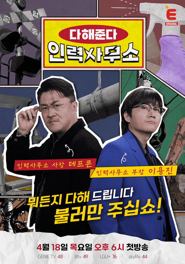 연예계 황금 인맥으로 유명한 데프콘, 이용진이 제2의 삼성을 목표로 시작한 기막힌 사업 '다해준다 인력사무소'는 매주 목요일 오후 여섯시 티캐스트 E채널에서 확인할 수 있다.
