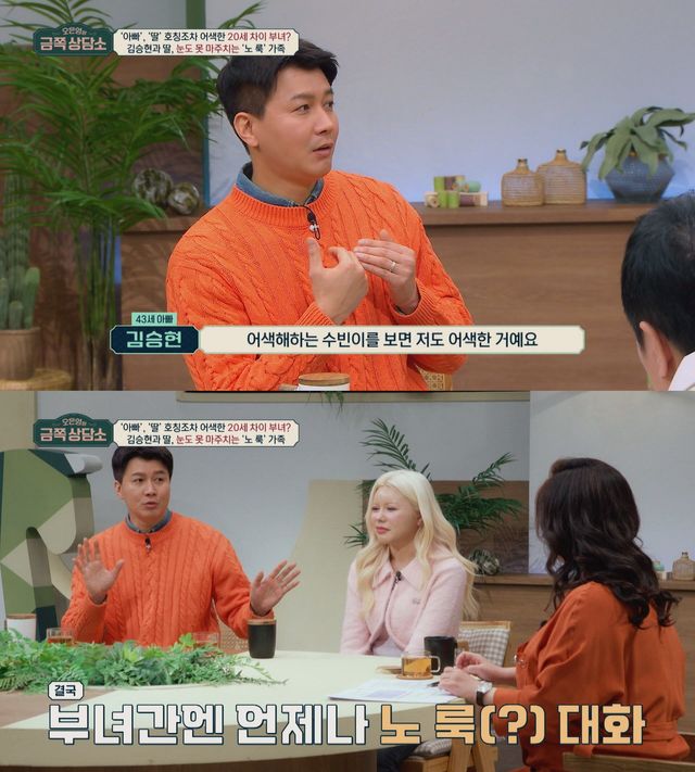 이어 그는 어릴 적부터 조부모님과 함께 살았기에 김승현에게 "아빠"라는 호칭을 부르는 것도, 단둘이 있는 상황이나 눈을 마주치는 것도 어색하다고 밝힌다.