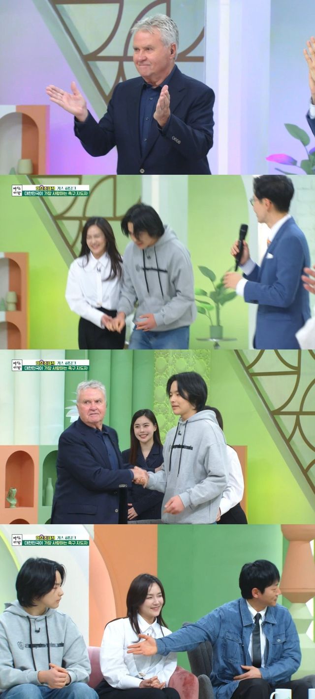 9일 오전 방송된 KBS ‘아침마당’에서는 거스 히딩크 전 축구감독이 과거 2002년 월드컵에서 한 팀을 이뤘던 김남일 전 축구선수 겸 축구감독을 만나는 장면이 그려졌다.