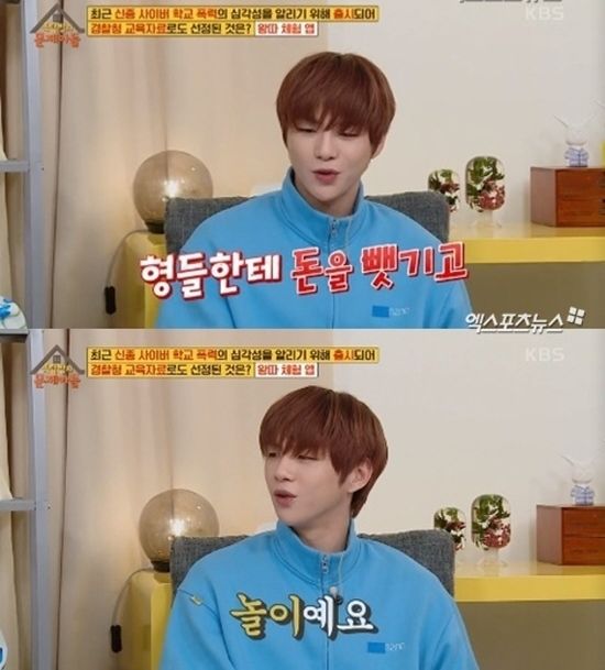 강다니엘은 KBS 2TV '옥탑방의 문제아들'에서 "초등학교 4, 5학년 때쯤 형들에게 돈을 뜯기고 눈에 걸리면 그냥 맞았다", "게임을 하면 그 게임 계정에 좋은 아이템이 있으면 뺏어가더라. 나도 몇 번 뺏겼다. 학교에서 지갑도 도둑맞은 적도 있다"라고 말했다.