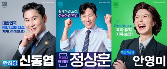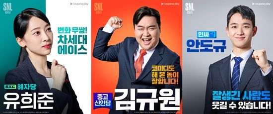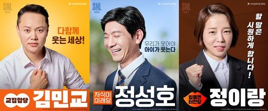 (엑스포츠뉴스 조혜진 기자) 제22대 국회의원 선거를 앞둔 9일, 쿠팡플레이 코미디 쇼 'SNL 코리아'가 선거 패러디 포스터를 공개했다.