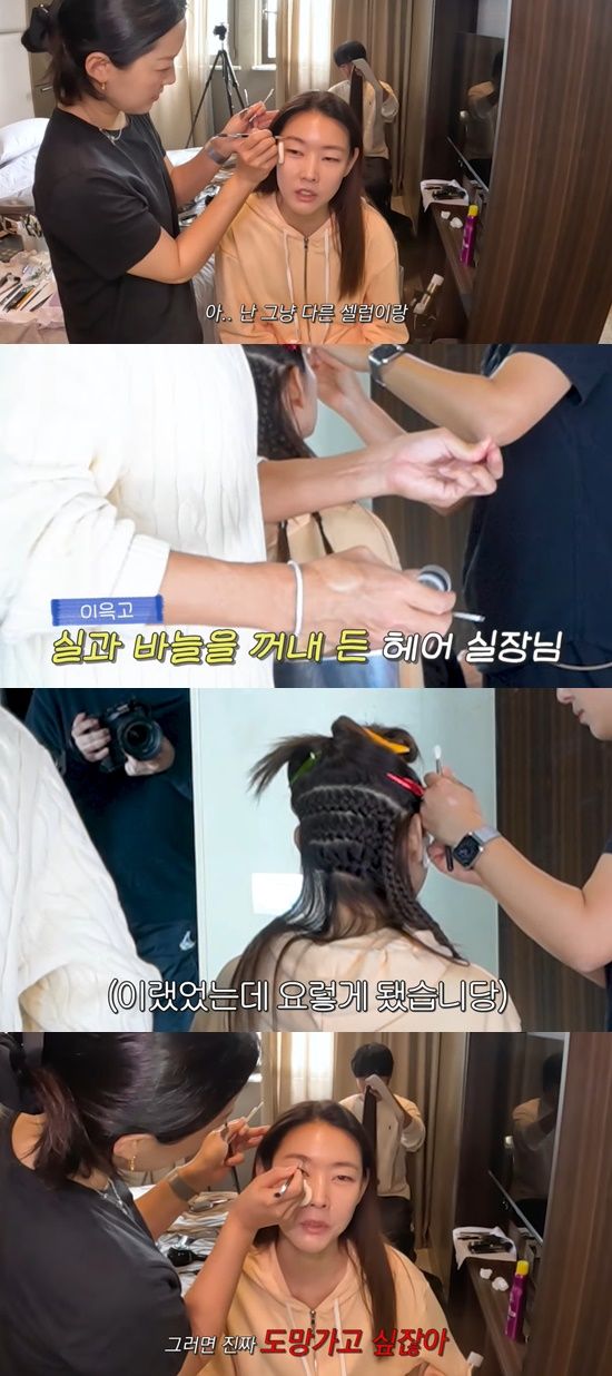 한혜진의 말에 실과 바늘을 꺼내 든 한혜진의 헤어 실장은 어디에도 꿀리지 않을 스타일을 만들기 위해 심혈을 기울이며 머리카락 사이사이에 바느질하는 등 신기한 모습을 연출했다.