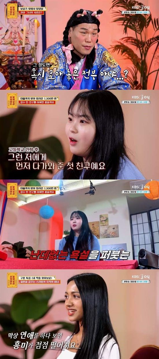 8일 방송된 KBS Joy '무엇이든 물어보살'에는 믿었던 친구의 배신으로 25살에 1,300만 원의 빚을 떠안고 괴로워하는 사연자가 등장했다.