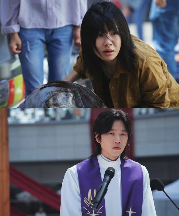 사라진 주임신부를 대신해 신도들을 보살피는 보좌신부 성재(전성우 분)는 사제복을 입고 강단 앞에 서며 각종 혼란스러운 상황에도 사람들의 감정을 먼저 생각한다. 이어 전투근무지원 대대 중대장 인아(김윤혜 분)는 보급 수송과 치안 유지를 관리하는 책임자다운 카리스마를 발산한다.