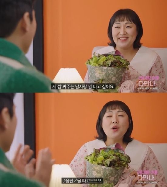 먼저 이수지는 "쌈 싸주는 남자랑 썸 타고 싶다"며 상추를 우걱우걱 먹었다. 이는 '나는 솔로'에서 순자가 영철과 데이트 당시 쌈 싸주는 모습에 호감이 커졌던 장면을 패러디한 것.
