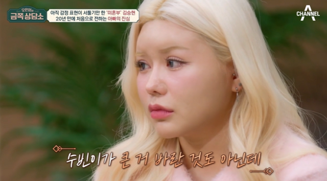 오은영은 “수빈 씨의 근본적 문제는 두려움이다. 버려지는 것에 대한 두려움”이라고 진단했고, 김승현은 끝내 눈물을 흘렸다. 김승현은 “수빈이가 ‘내가 태어나고 싶어서 태어난 거야? 내가 태어난 건 선택이 아니잖아’라고 말한 적 있다. 마음이 아팠다”고 했다.