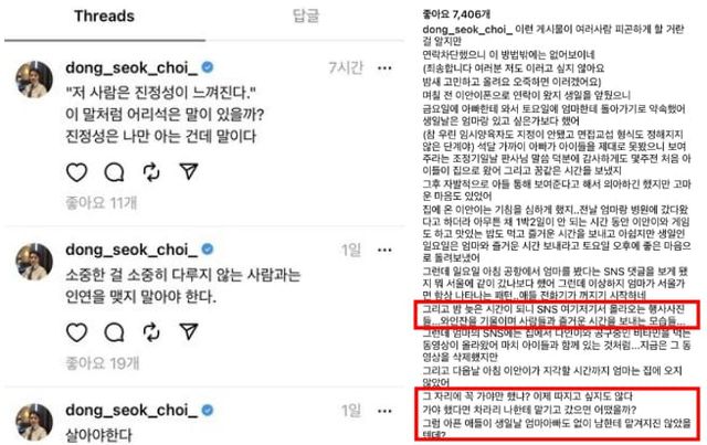 이에 누리꾼들은 "최동석이 올리는 글 보면 항상 진실이 담겨있는 것 같음... 박지윤 무슨 잘못을 했길래", "박지윤 최동석 잉꼬부부 아니였나? 진짜 사람일은 모른다", "아니 어른인데 최동석도 저렇게 만천하가 보는데 자꾸 글 쓰는 것도 이해안됨 두 사람만 진실을 알겠지" 등등의 반응을 보이고 있습니다.