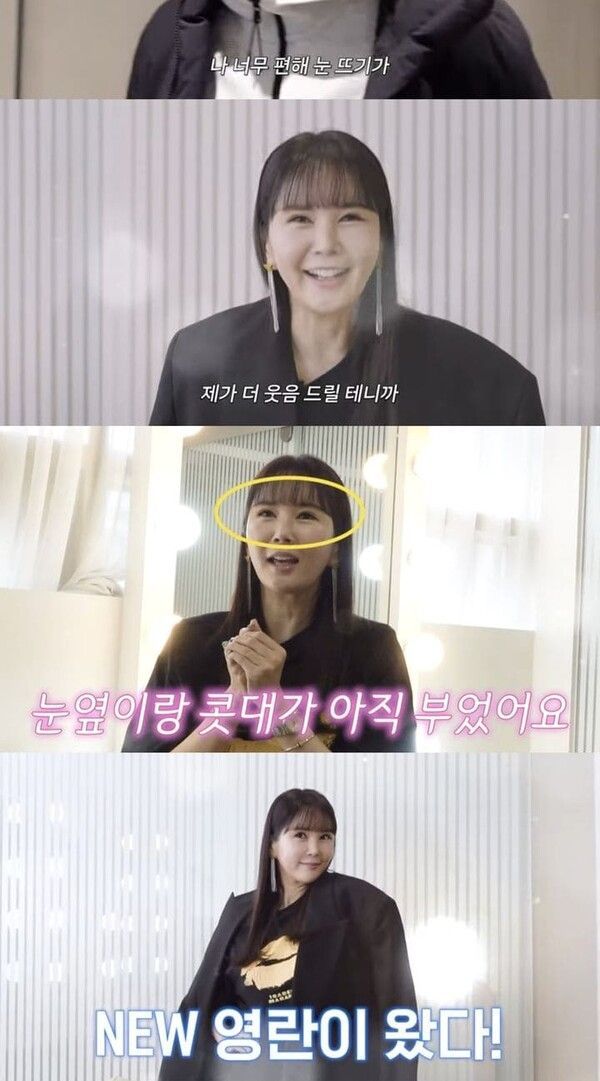 장영란은 선글라스를 벗은 뒤 눈을 공개했다. 본인이 받으려는 성형수술에 대해 "눈썹 밑에 스크래치를 내는 기법이다. 정확한 이름은 눈썹밑 거상술"이라고 설명했다. 유튜브 제작진은 "남편한테는 얘기했냐"고 물었다. 장영란은 "남편에게는 얘기하고, 아이들에게는 얘기 안 했다"고 답했다.